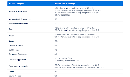 - Referral fees – Usually 8–15% per sale, depending on the category.